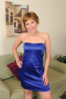 Small breasted mature babe Brandi Minx is looking sexy as fuck in her blue satin dress. Under that dress lies her black bra and panties, which she quickly sheds and drops to the floor. 103 pics