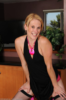 Spunky, fun, southern MILF Sydney Rae is home from a hot date, and is still rocking her sexy black dress. All black though doesn't mesh with her personality, so she also has hot pink panties on underneath. Enjoy as this blond MILF drops her panties between her ankles and plays with her throbbing pussy.